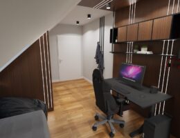 Mało kto lubi pokoje ze skosami. Kupując dom lub budując go, cieszymy się z każdego dodatkowego pomieszczenia, jednak po pewnym czasie zaczynamy dostrzegać głównie mankamenty wynikające ze skosów, zapominając o ich wyjątkowości. Tak było i tym razem. Mały chłopiec miał swój pokój na poddaszu i był szczęśliwy, że może zamknąć drzwi przed siostrami i mieć …