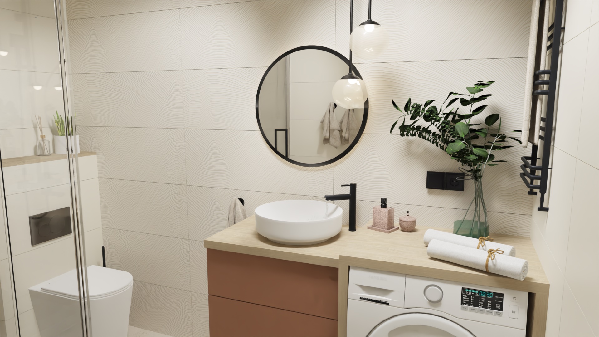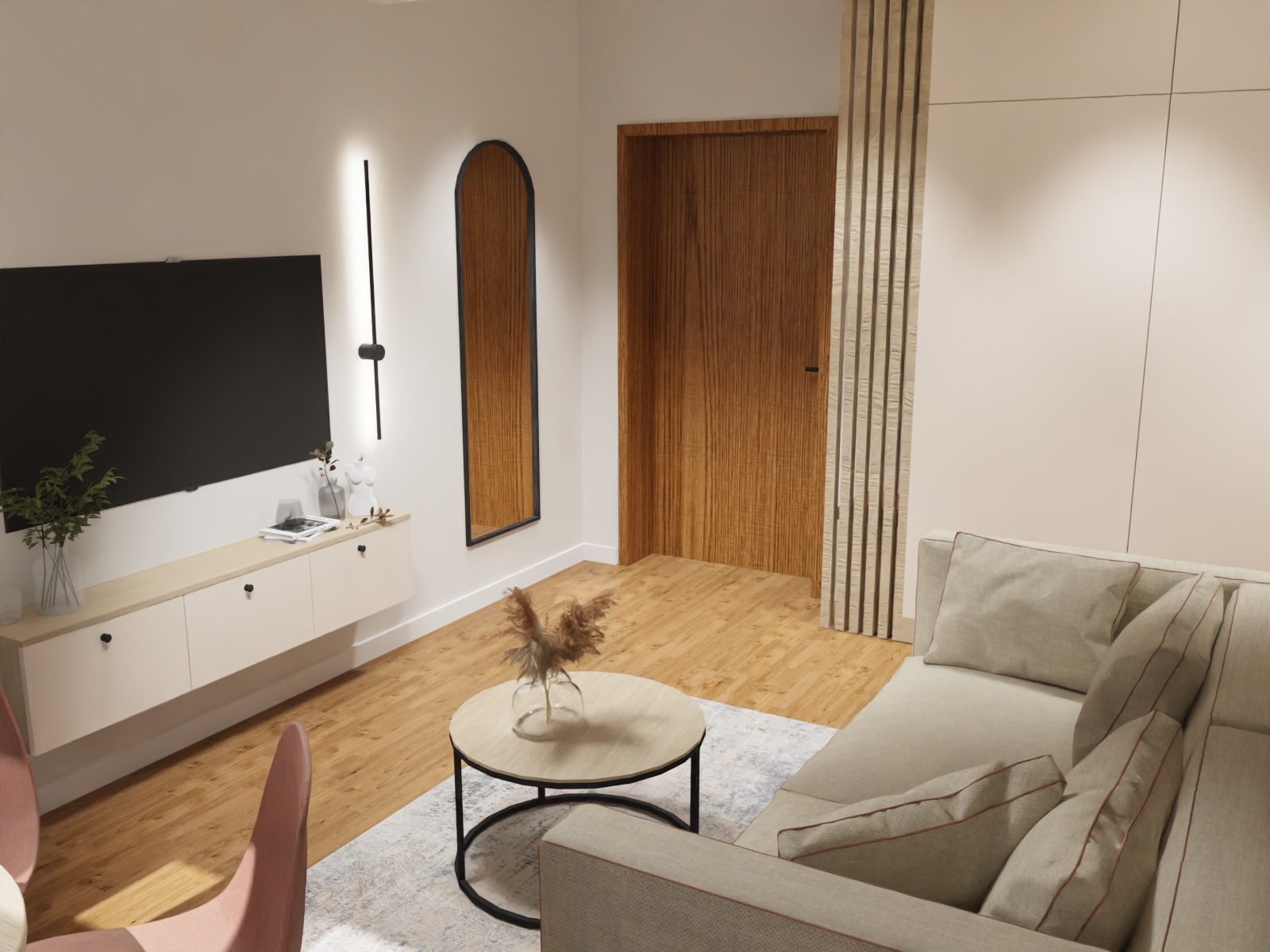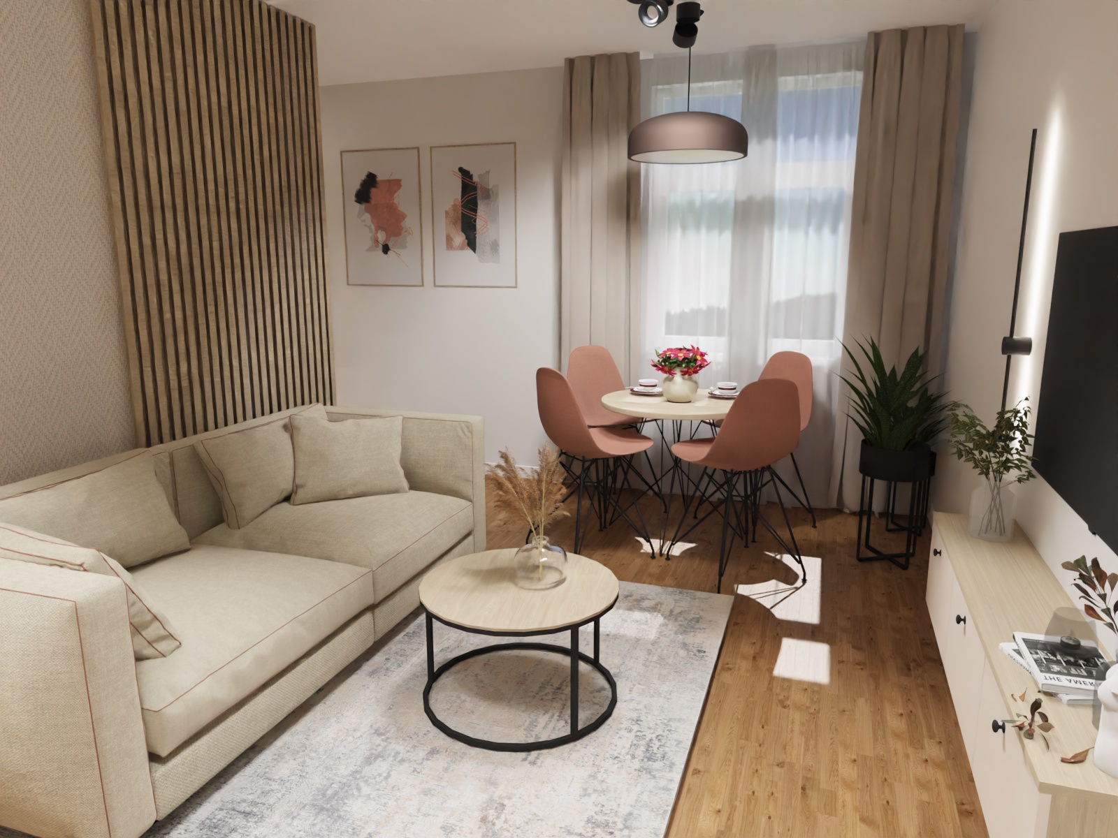 Dwa pokoje z łazienkami o średnim standardzie, przeznaczone na wynajem krótkoterminowy zmieniłam w apartament dla 2-4 osób, również z przeznaczeniem na wynajem krótkoterminowy. Apartament zyskał aneks kuchenny, salon, sypialnię z dużym wygodnym łóżkiem i wygodną łazienkę.